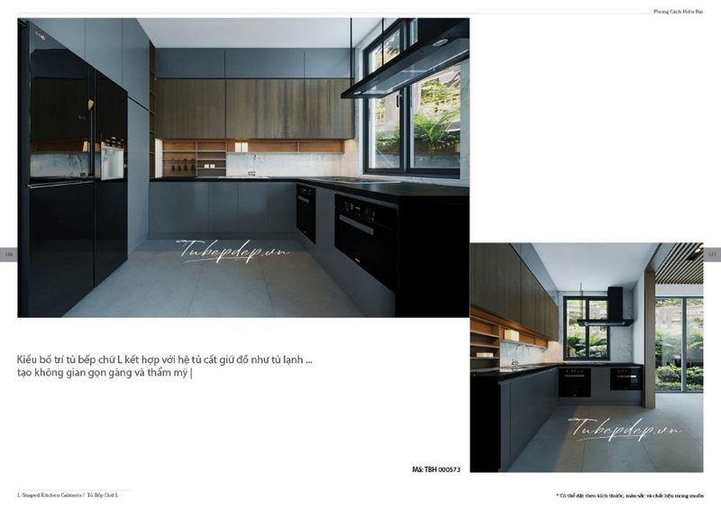 Tủ bếp hiên đại được lắp đặt để tạo ra một mặt bằng tiện lợi, đa năng và gọn gàng, không tốn quá nhiều diện tích nhưng vẫn đảm bảo đầy đủ tính năng.