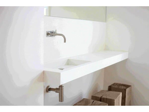 Bàn đá lavabo trắng sáng sạch nổi bật mang lại vẻ đẹp cao cho phòng tắm.